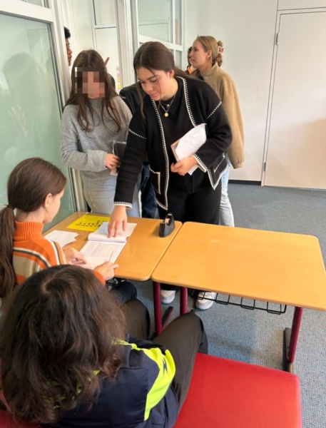 Am Wahltag selbst war die Aufregung groß. Als Lernort für Demokratie hat die Gustav-Schönleber-Schule die Wahl der Schülersprecherin oder des Schülersprechers entsprechend gestaltet. Es wurde ein Wahllokal eingerichtet, dass von den Schülerinnen und Schülern in einem entsprechenden Zeitfenster aufgesucht werden konnte.